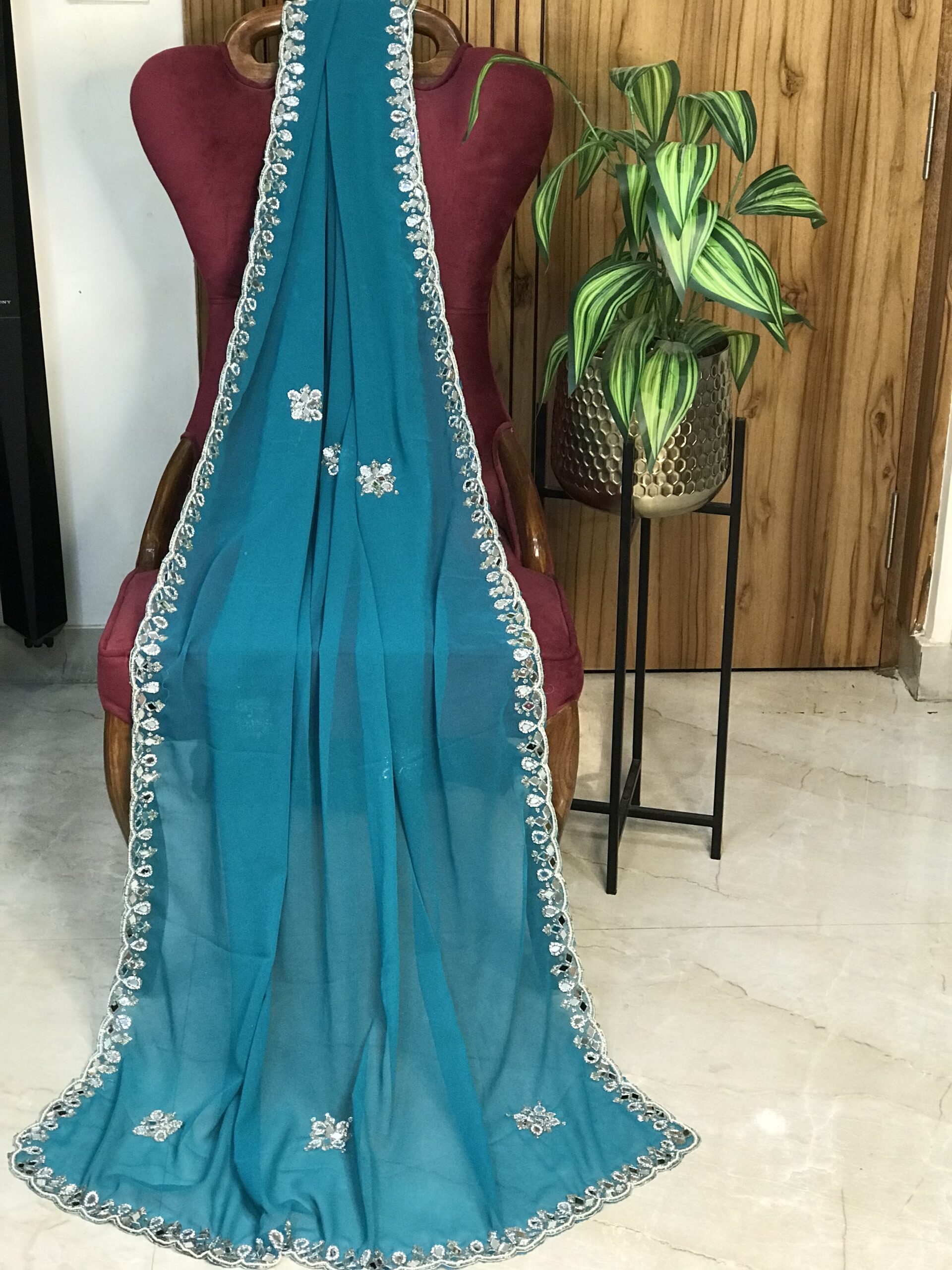 Designer Georgette Saree with Sheesha, Cut Dana, Moti & Zarkan Stone Work