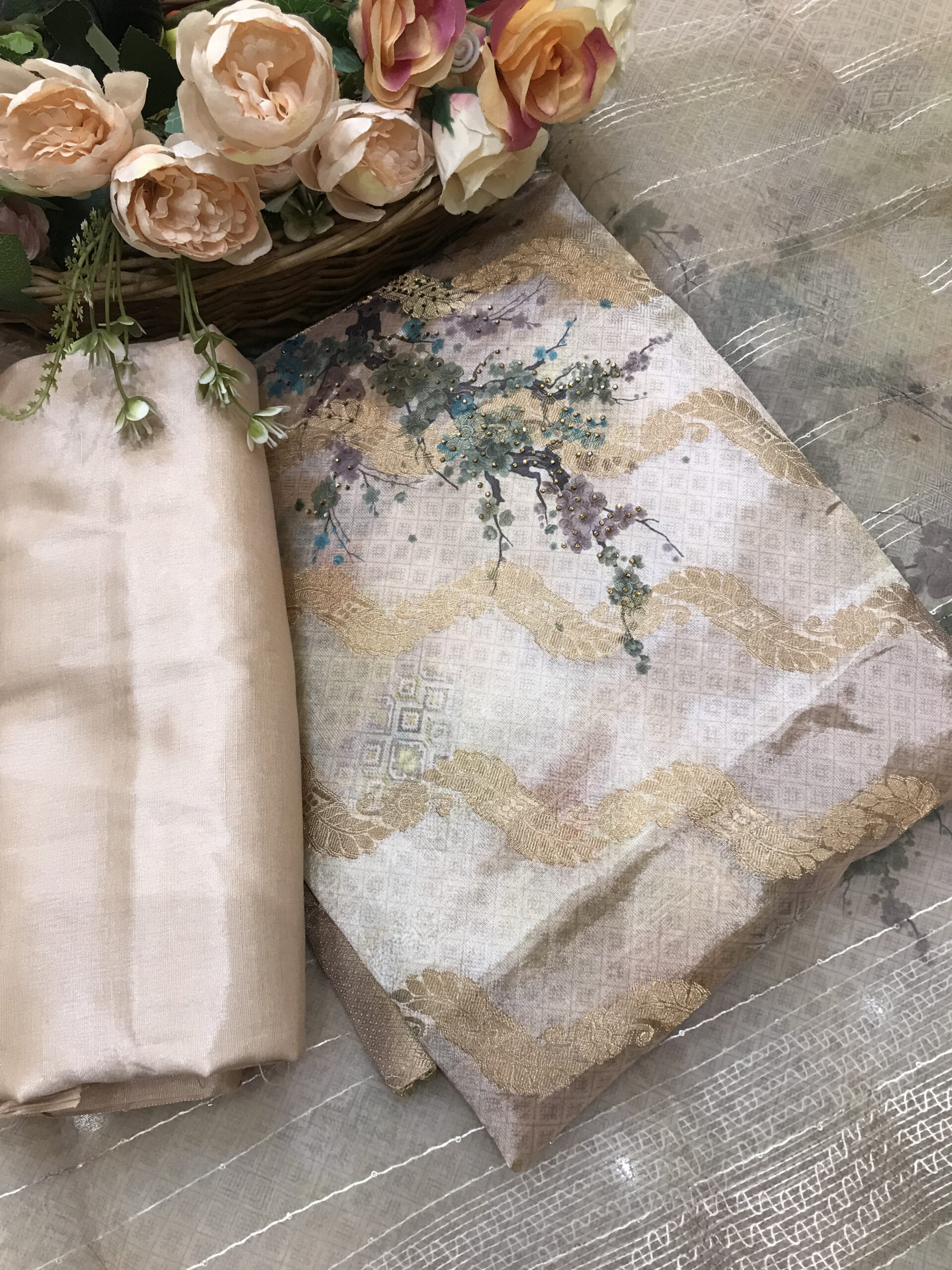 • Work: Digital Floral Print with Sequence and Zari Work