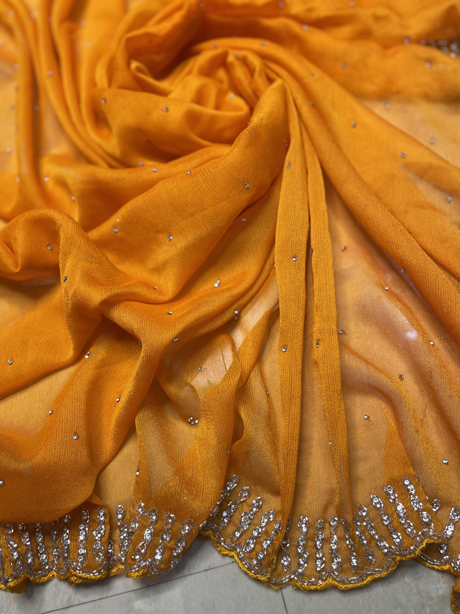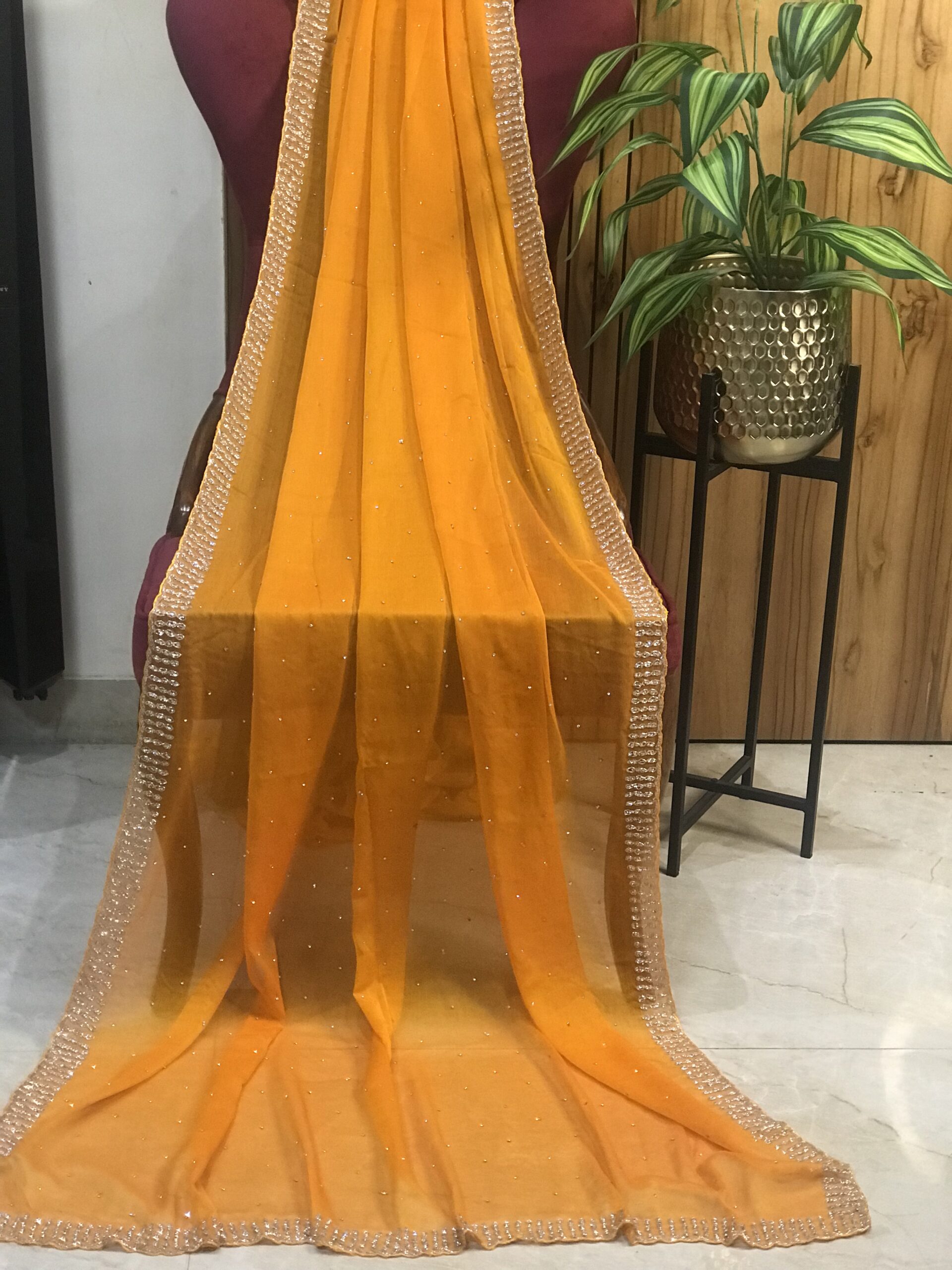 Be the first to review “Premium Chiffon Cut-Dana Embroidered & Zarkan Work Saree”