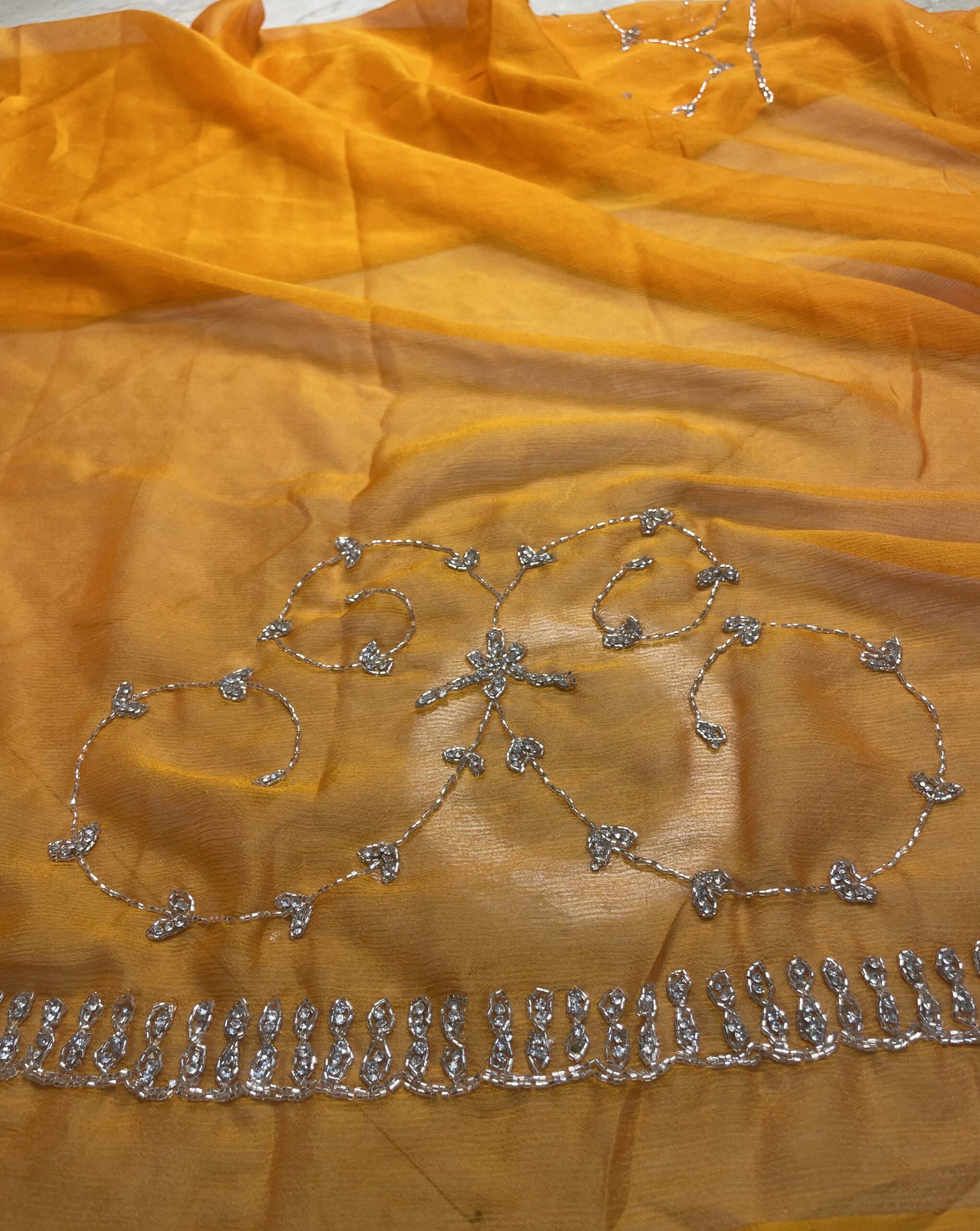 img 2918Premium Chiffon Cut-Dana Embroidered & Zarkan Work Saree