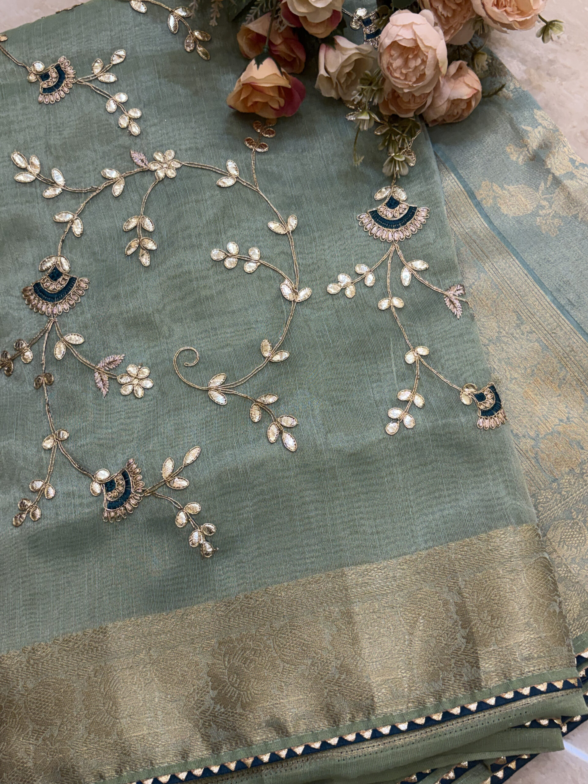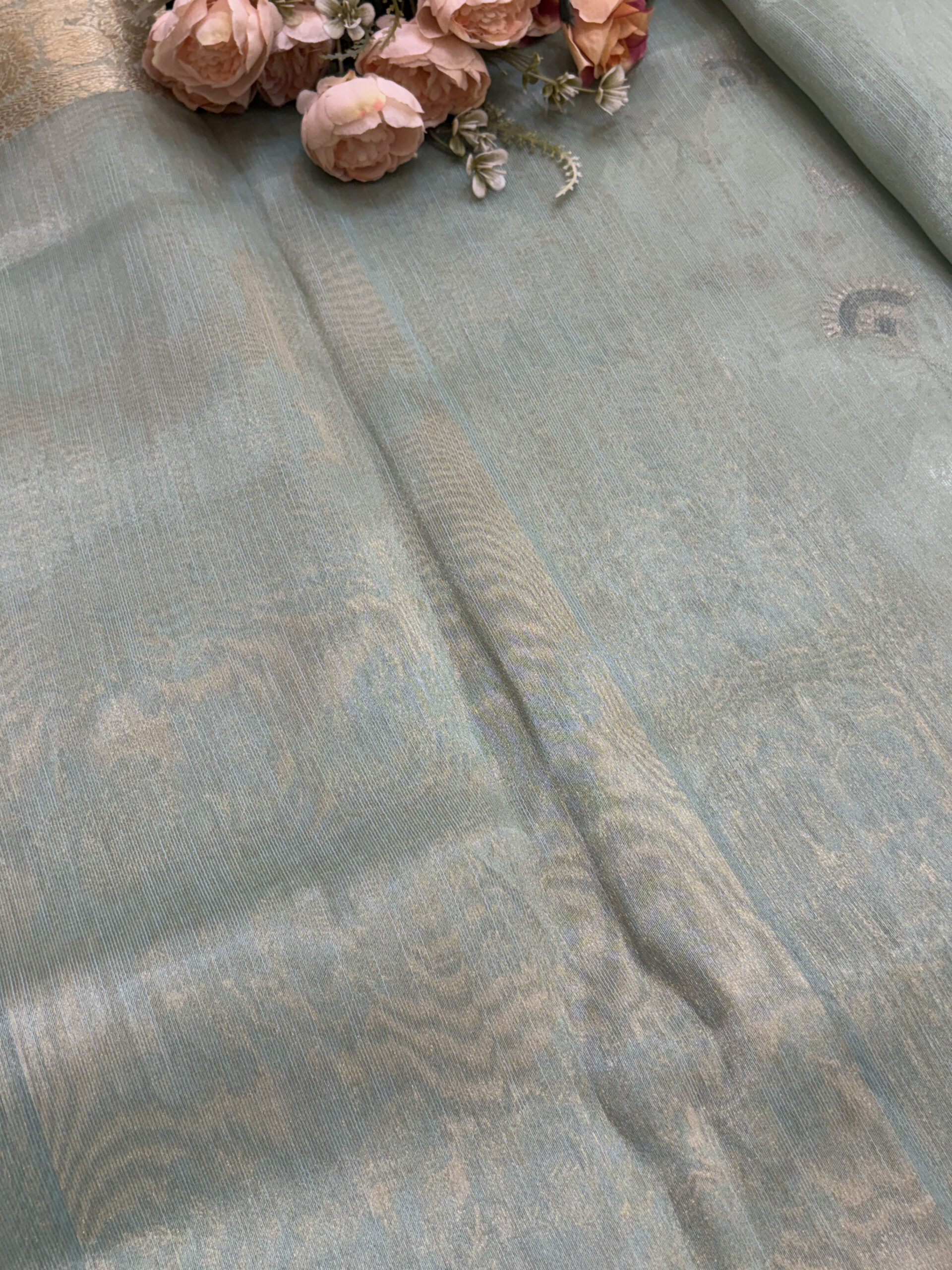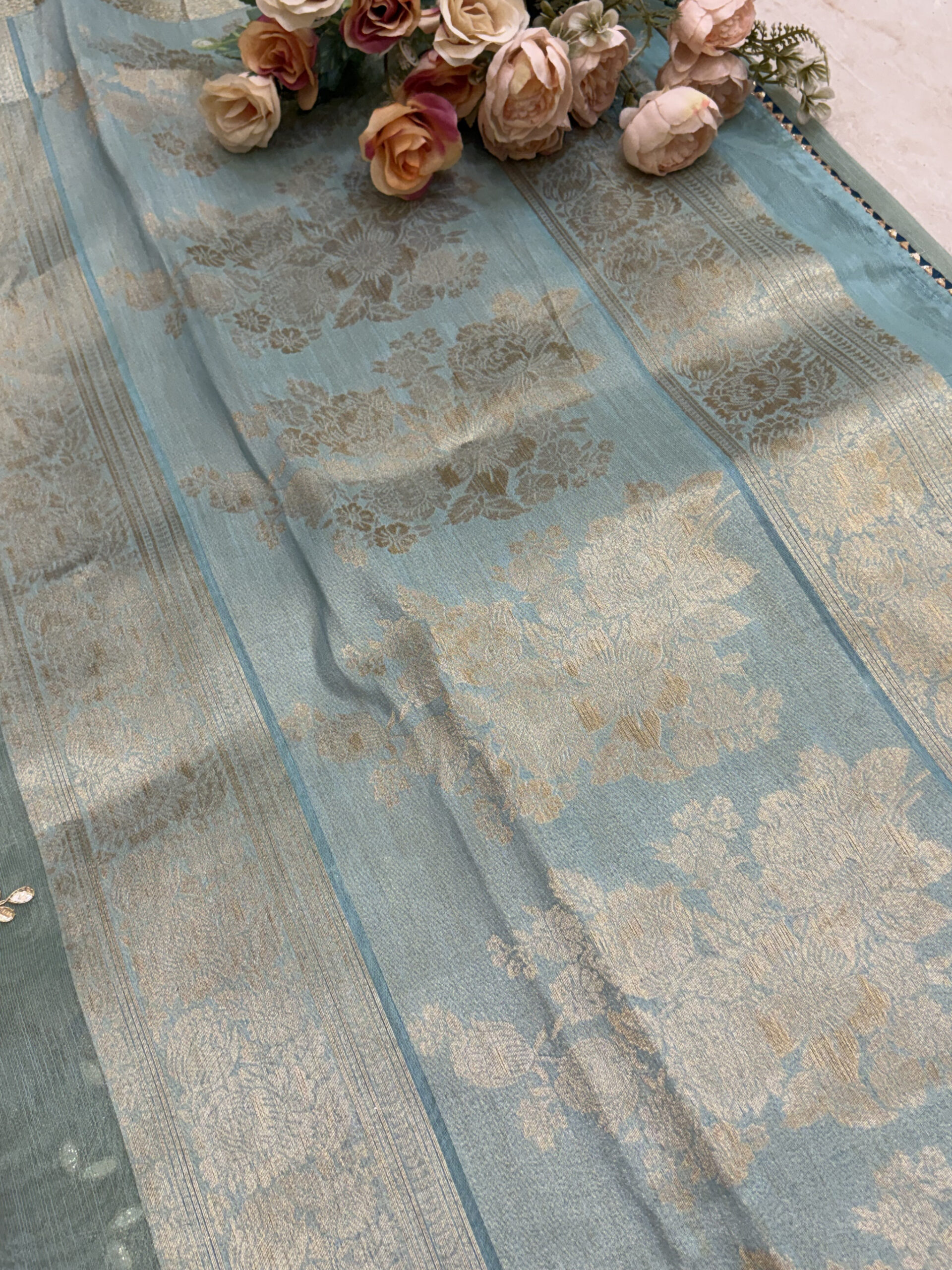 Premium Pastel Sea Green Organza Saree with Gota Patti Jaal Work