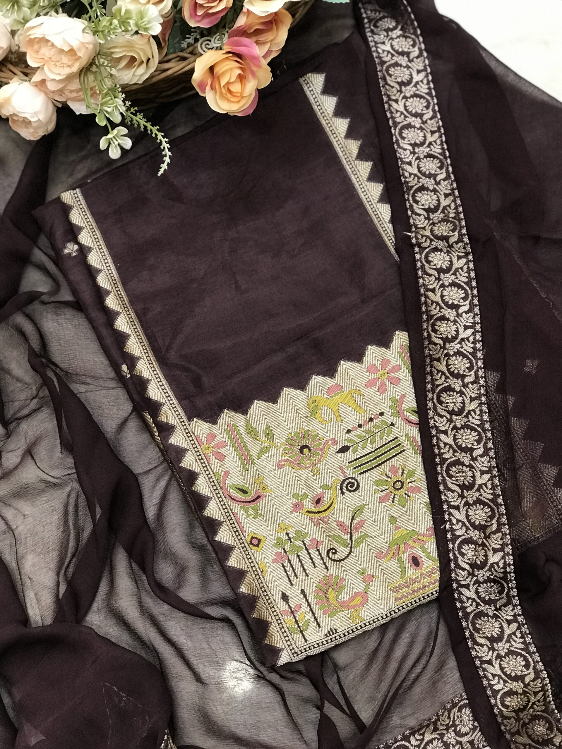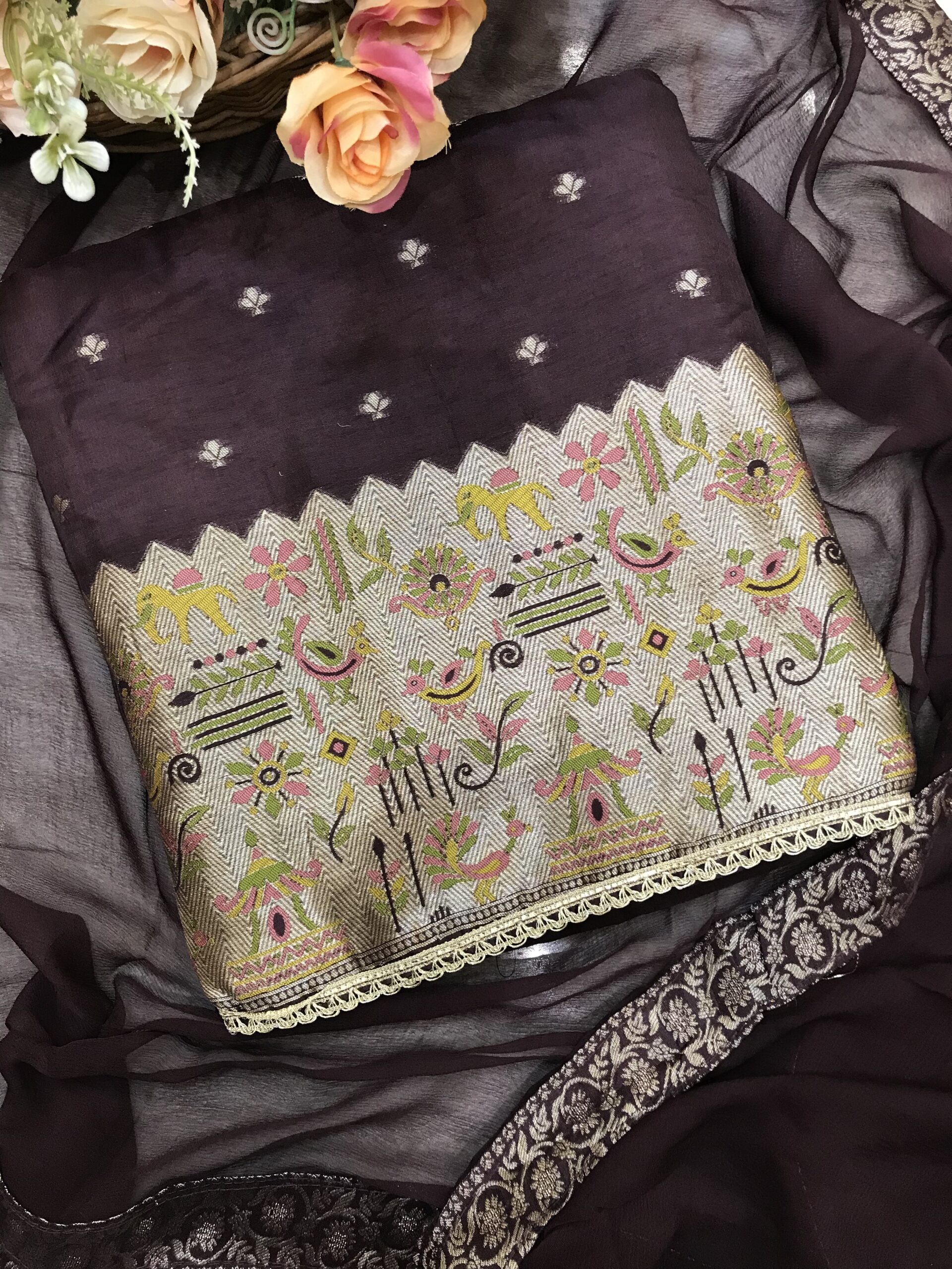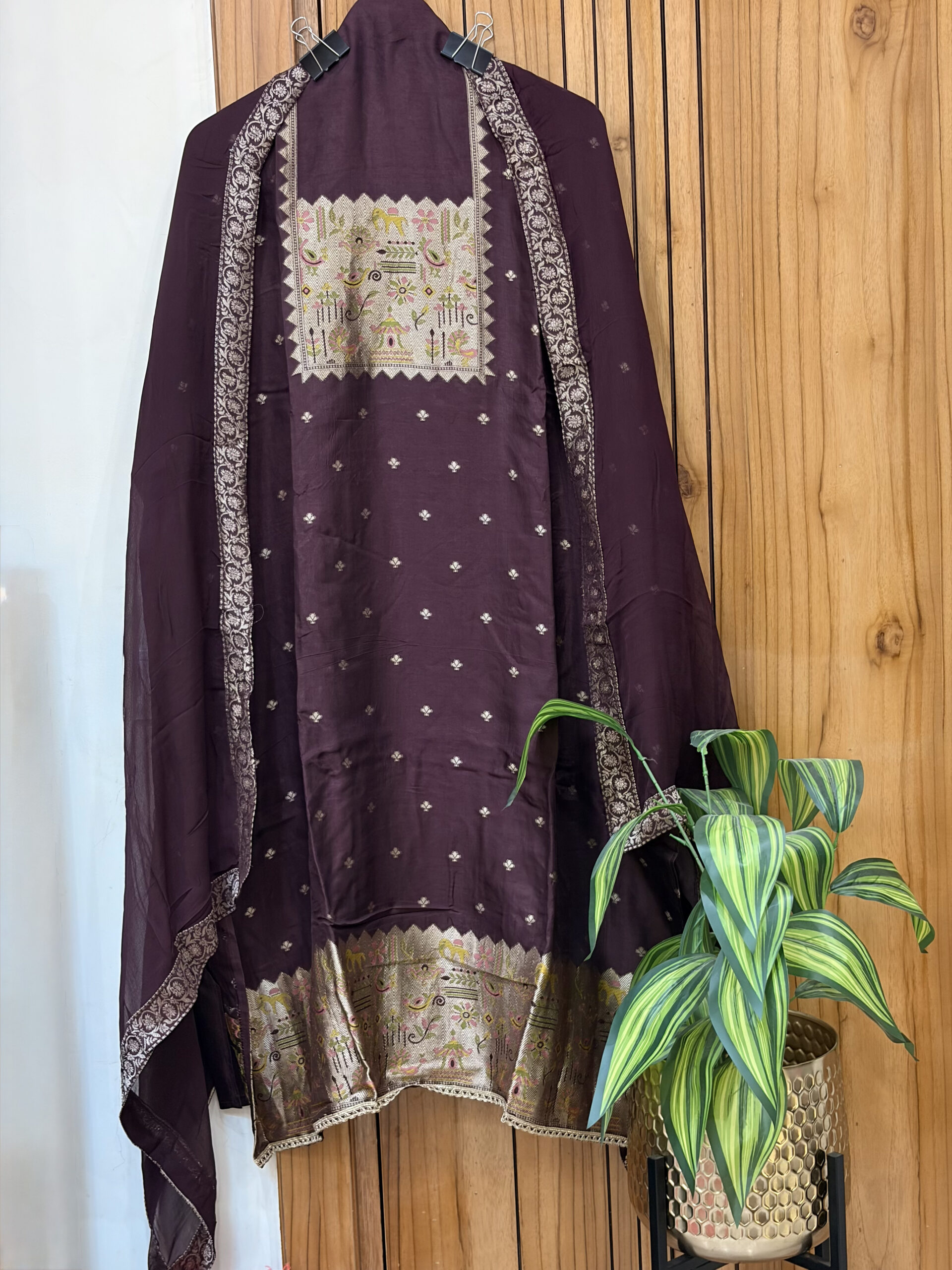 Premium Wine Colour Chanderi Silk Suit with Resham Embroidery
